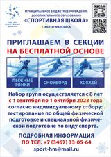 МБУ ДО "СПОРТИВНАЯ ШКОЛА" объявляет набор детей с 8 лет в секции "Лыжные гонки", "Сноуборд", "Хоккей" на бесплатной основе с 1 сентября по 1 октября 2023 года!