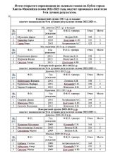 Подсчет очков открытых соревнований по лыжным гонкам на Кубок города Ханты-Мансийска сезона 2022-2023 года проводился по итогам 5-ти лучших результатов: